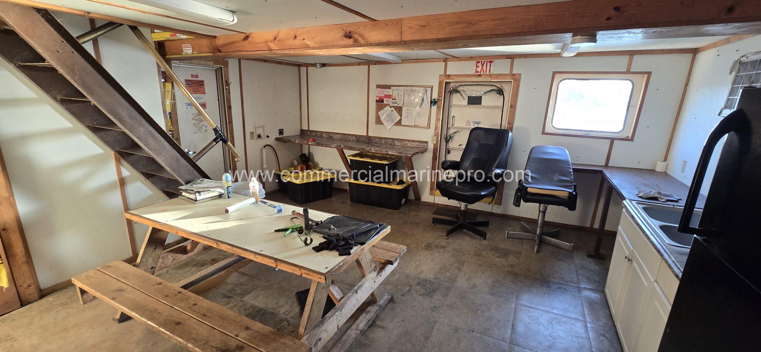 All welded steel constructed two deck, twin screw river type tow boat.
